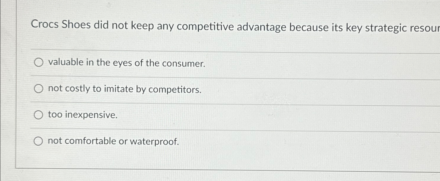 Solved Crocs Shoes did not keep any competitive advantage Chegg Very well made.