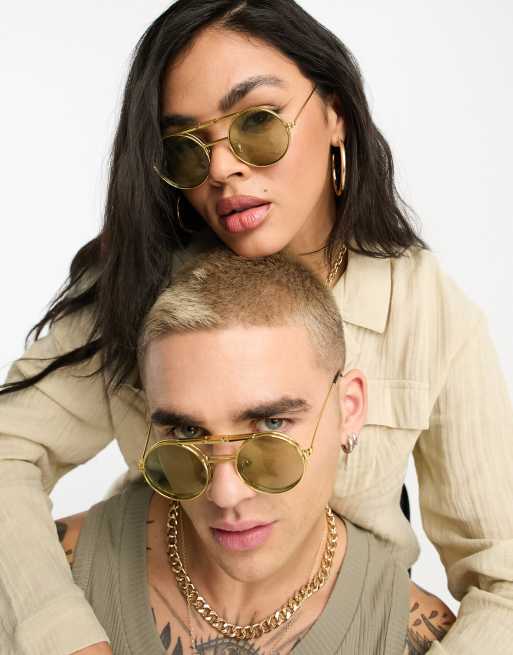 Gafas de sol verdes y doradas con lentes redondas abatibles para Very well made.