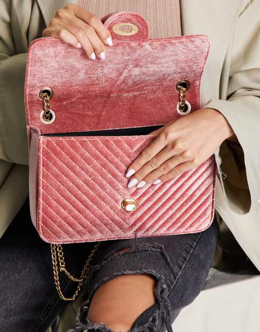 My Accessories London quilted velvet cross body bag in pink Very well made.
