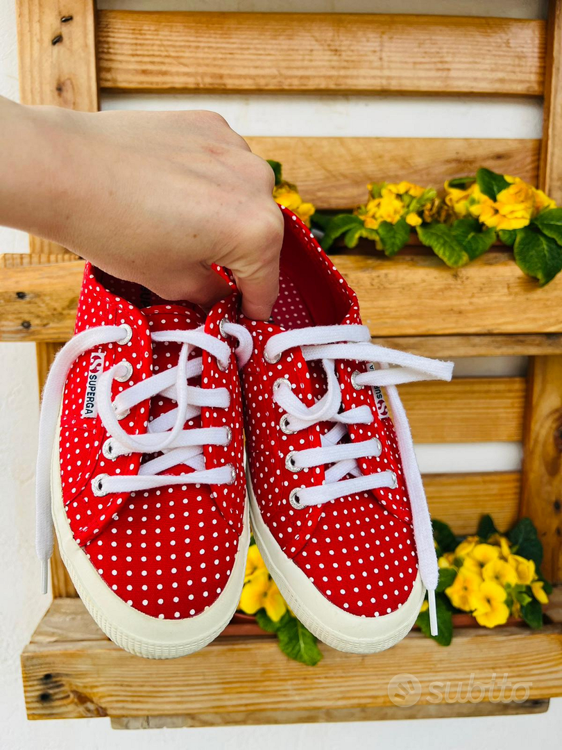 superga Rosse A Pois Bianchi indossate Very well made.
