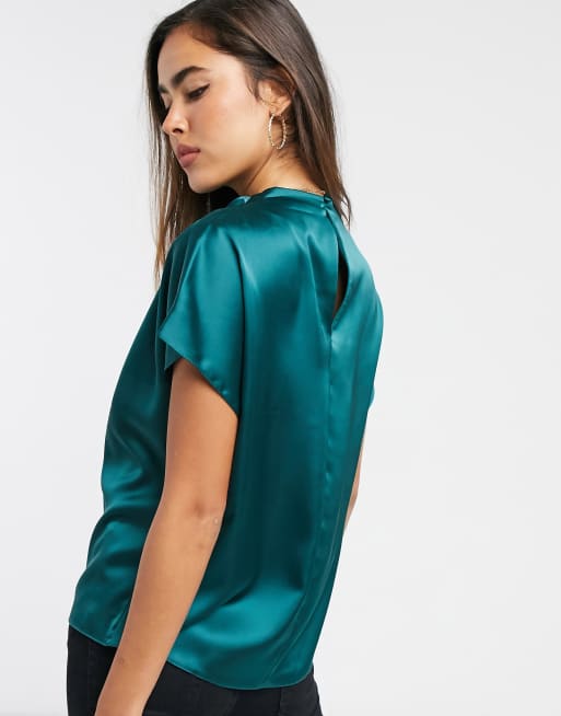 TEAL HIGH NECK SATIN LONG SLEEVE TOP Very well made.