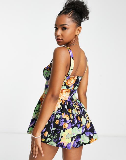 ASOS DESIGN twill corset flippy playsuit in floral print Very well made.