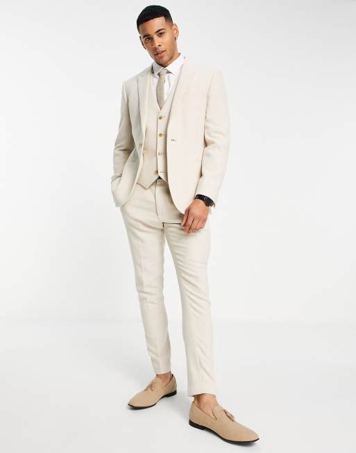ASOS DESIGN wedding slim suit with micro texture in stone ASOS Very well made.